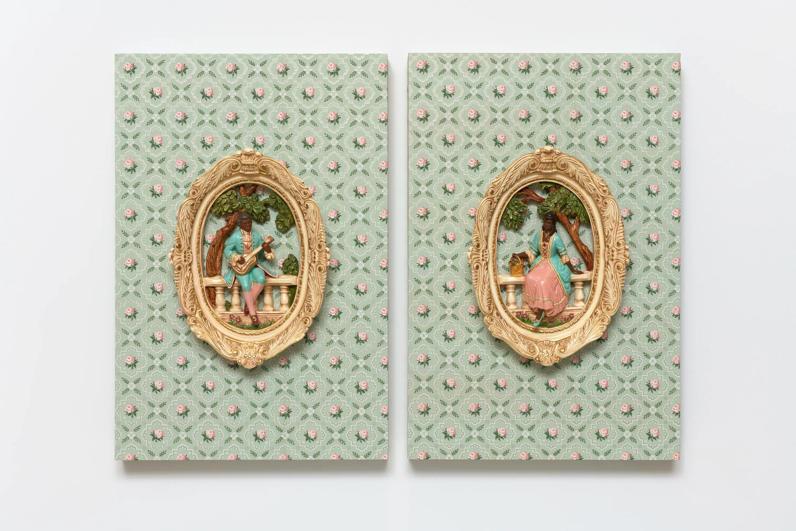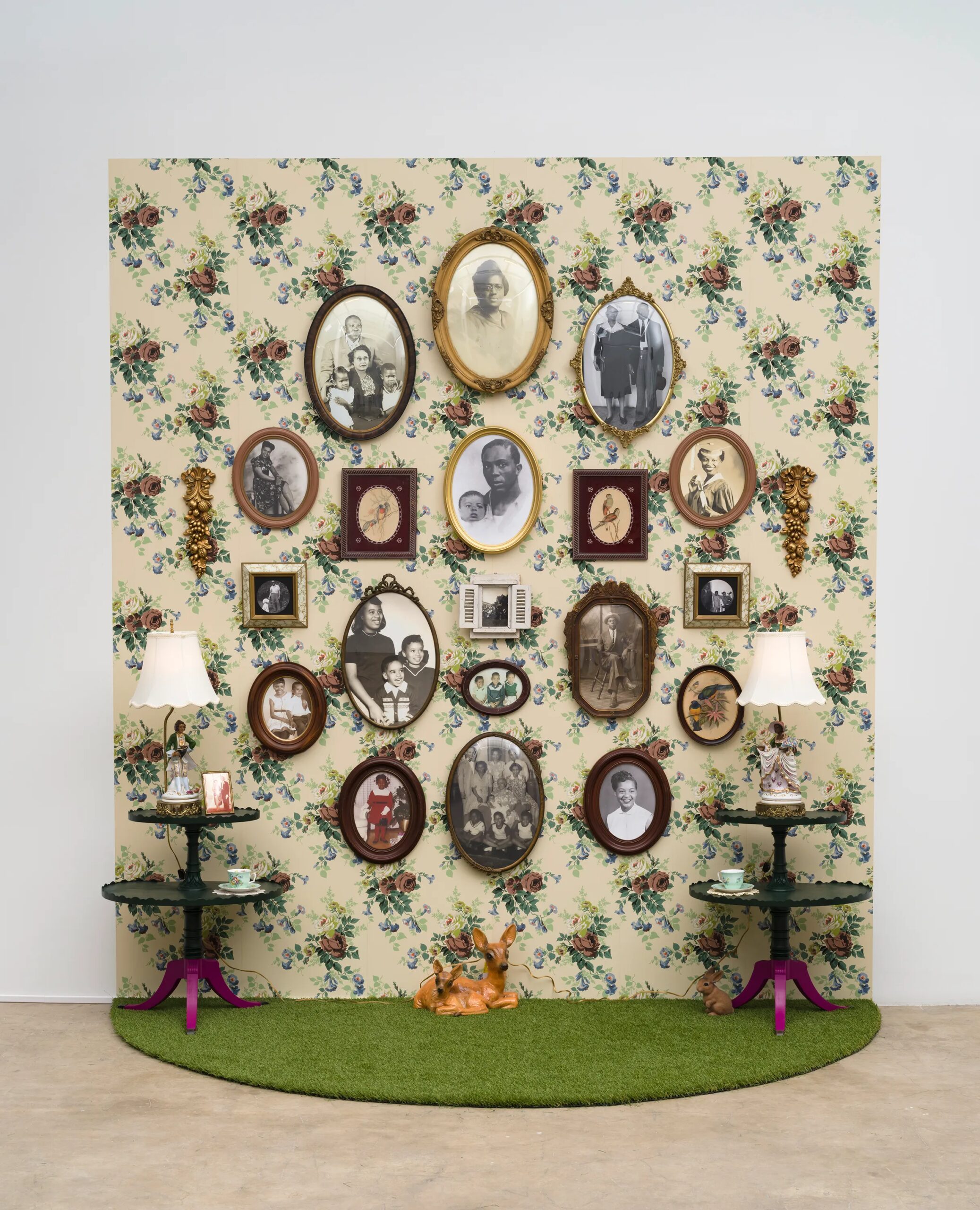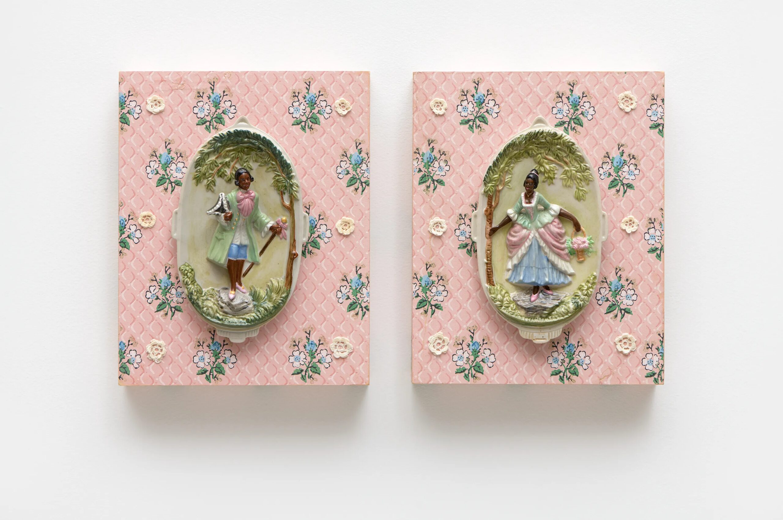 Genevieve Gaignard creates installations, sculptures, and photographic self-portraits that elicit dialogue around race, beauty, and cultural identity. As a biracial woman in the U.S., Gaignard investigates the aesthetic and cultural divide between black and white—a chasm as palpable as it is “invisible.” She interrogates notions of “passing” by positioning her own female body as the chief site of exploration—challenging viewers to navigate the powers and anxieties of intersectional identity. She retools found imagery from the 19th and 20th centuries—including vintage wallpaper, antique furniture, found figurines and décor—that have perpetuated racist stereotypes as a way to challenge and redefine their symbolic meaning. Gaignard also mines her own experiences to create images or environments that provoke critical thinking and changes in perspective. Utilizing soft color palettes, dark humor, and vintage materials in her staged photographs and imagined domestic environments, she makes artworks that reexamine social hierarchies and stereotypical beauty standards to create sites of resistance.