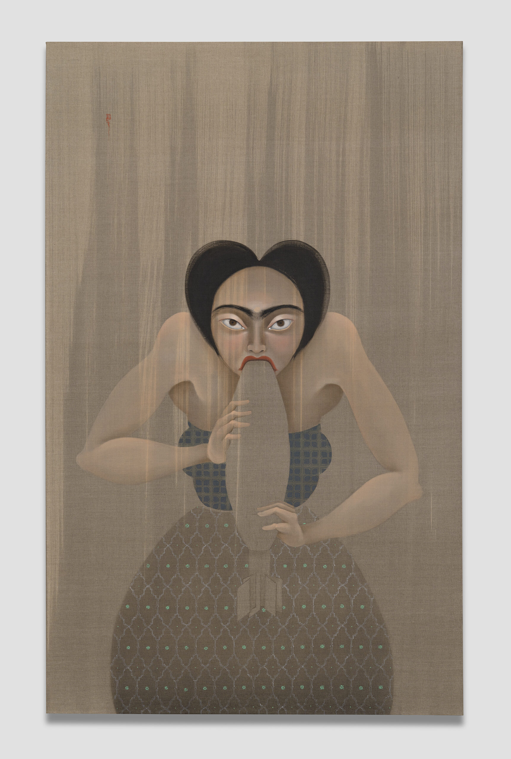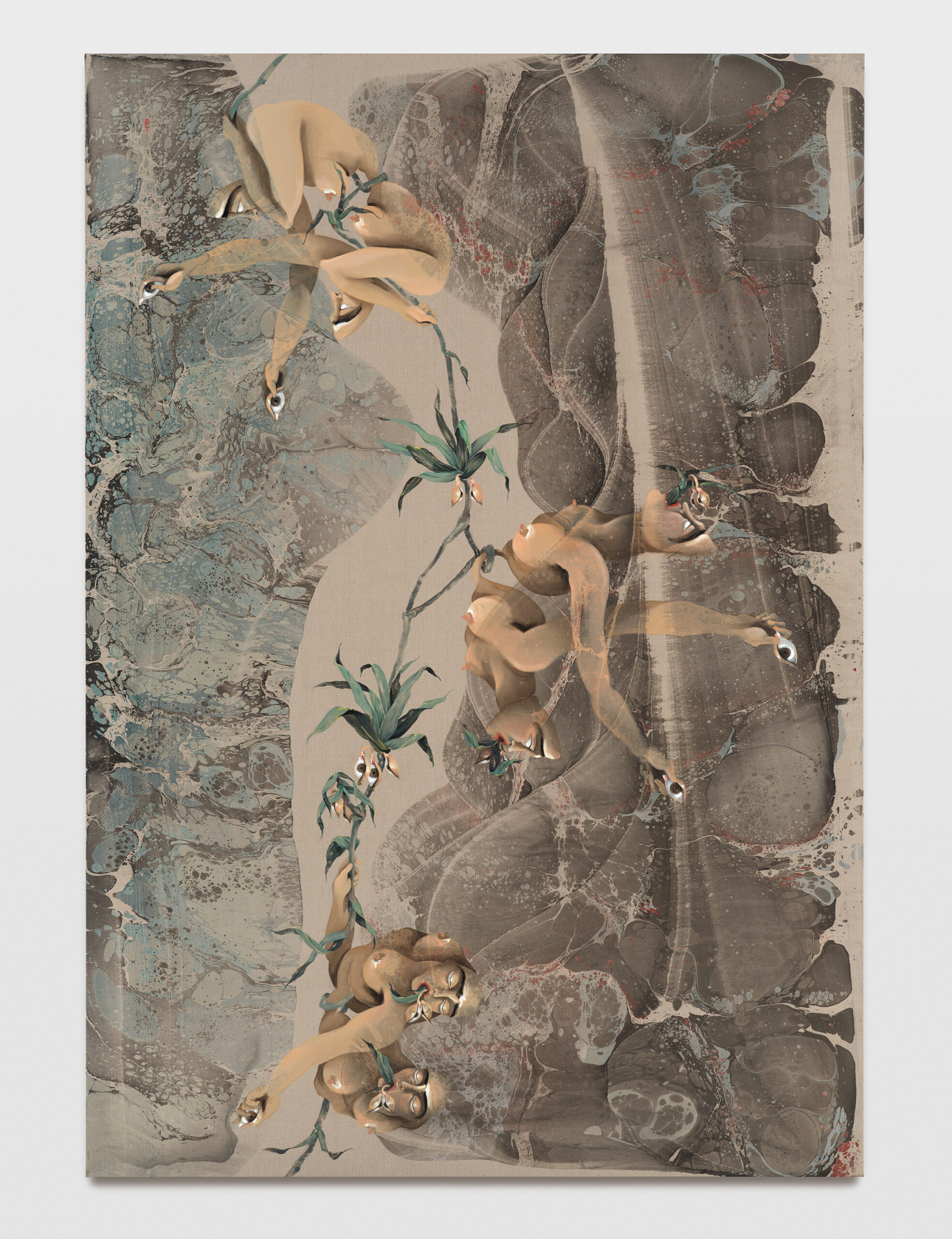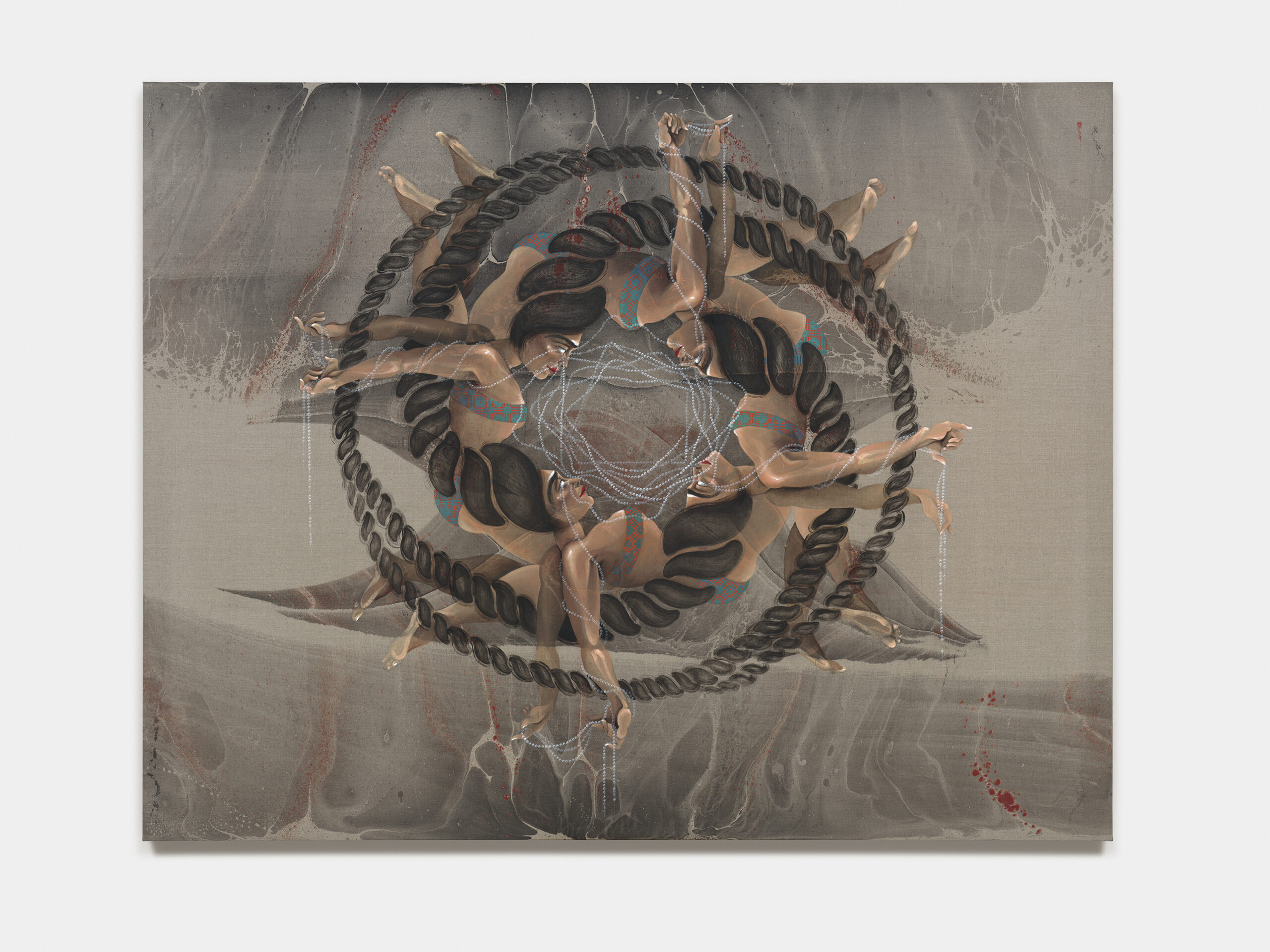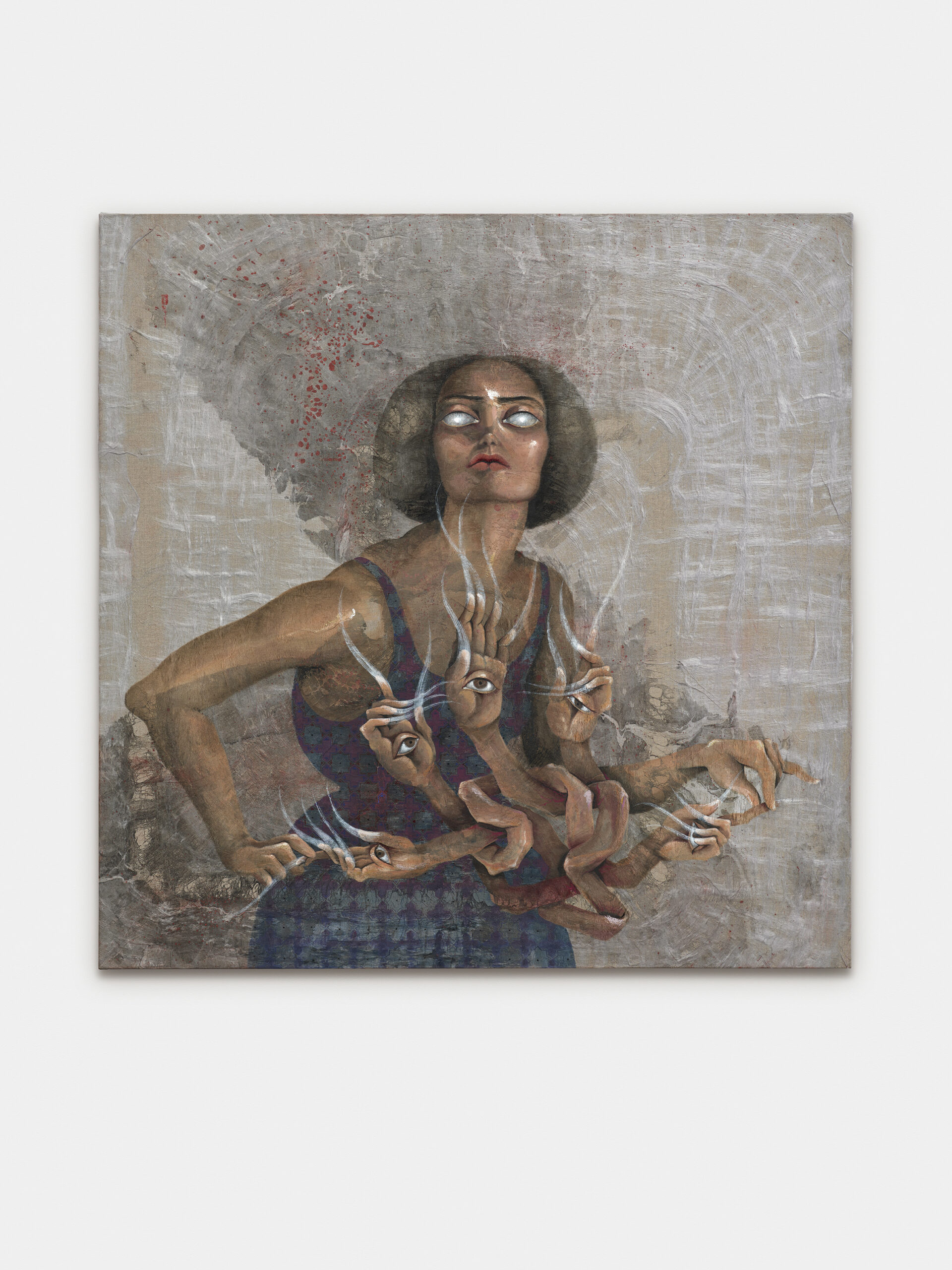 Hayv Kahraman’s multifaceted work—painting, performance, and sculpture— primarily deals with the body politics of migrant consciousness. Her paintings take on themes of memory, violence, and involuntary migration as she processes her childhood in the war-torn country of Iraq and her adolescence in Sweden as a refugee. While Kahraman’s work is intertwined with the histories of the Iran-Iraq and Gulf Wars, it is also invested in the idea of feminine collectivity, identity, belonging, and diasporic cultural memory.
