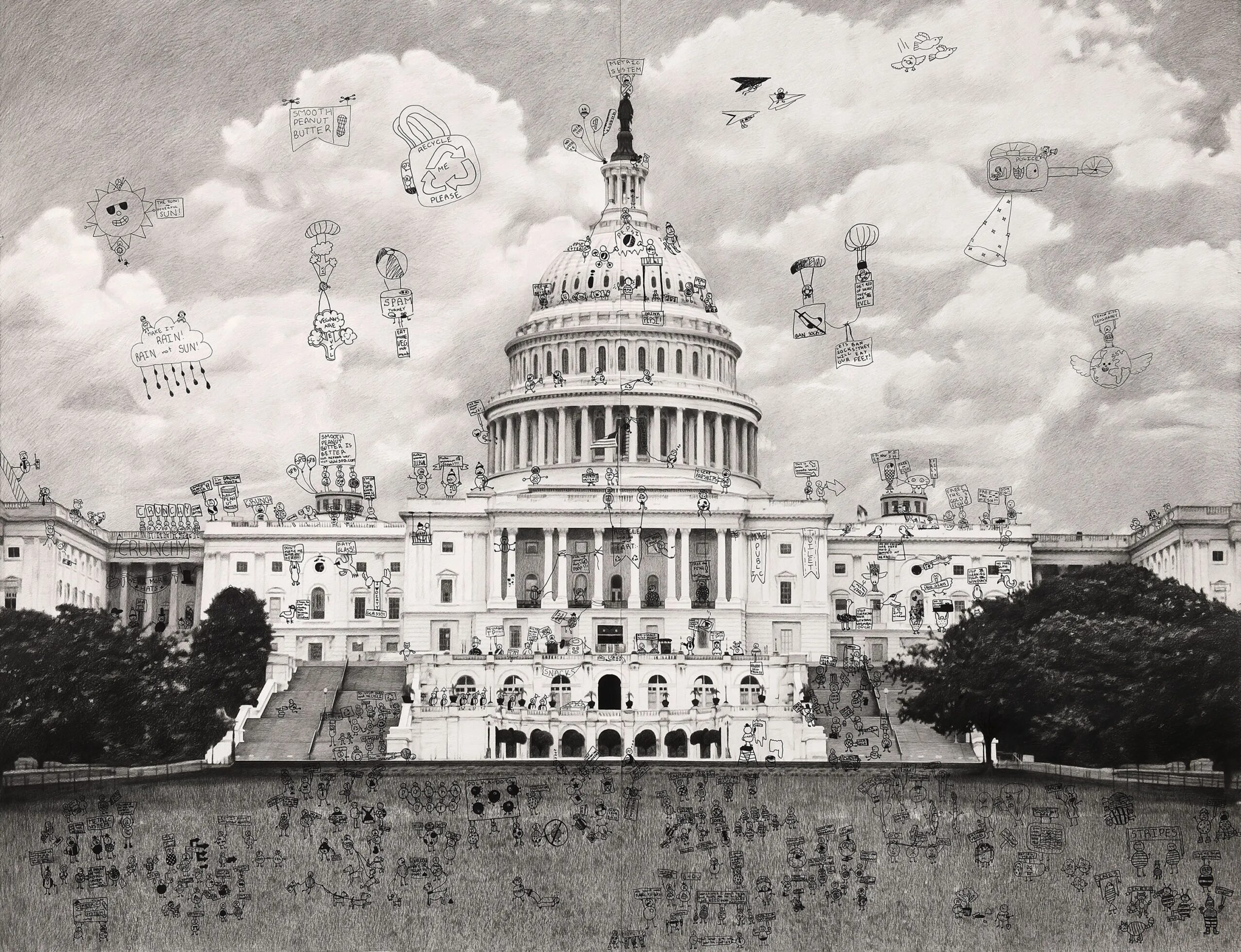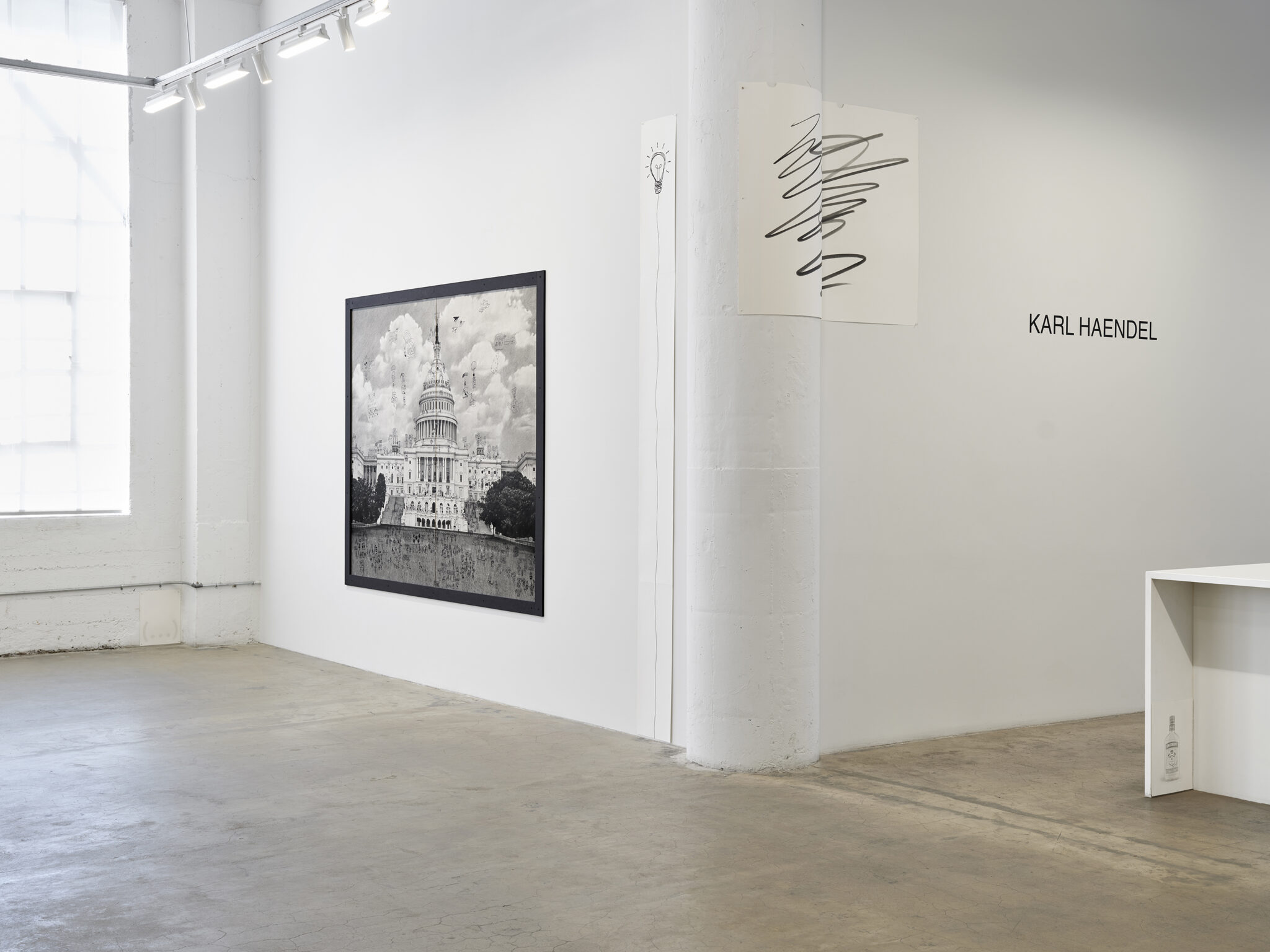 My papa, Karl Haendel, is having yet another art show. He said that this will be “my best show ever”. But he says this before every art show, even though, technically, they can’t all be the best, as some of them must be just okay, and at least one must be the worst. At a glance, the show looks very similar to all the other art shows he has had, even though I know it is new art because he is always at his studio drawing more art. He told me he draws so much because he is “building a singular language of drawing” which seems a little out of reach to me.