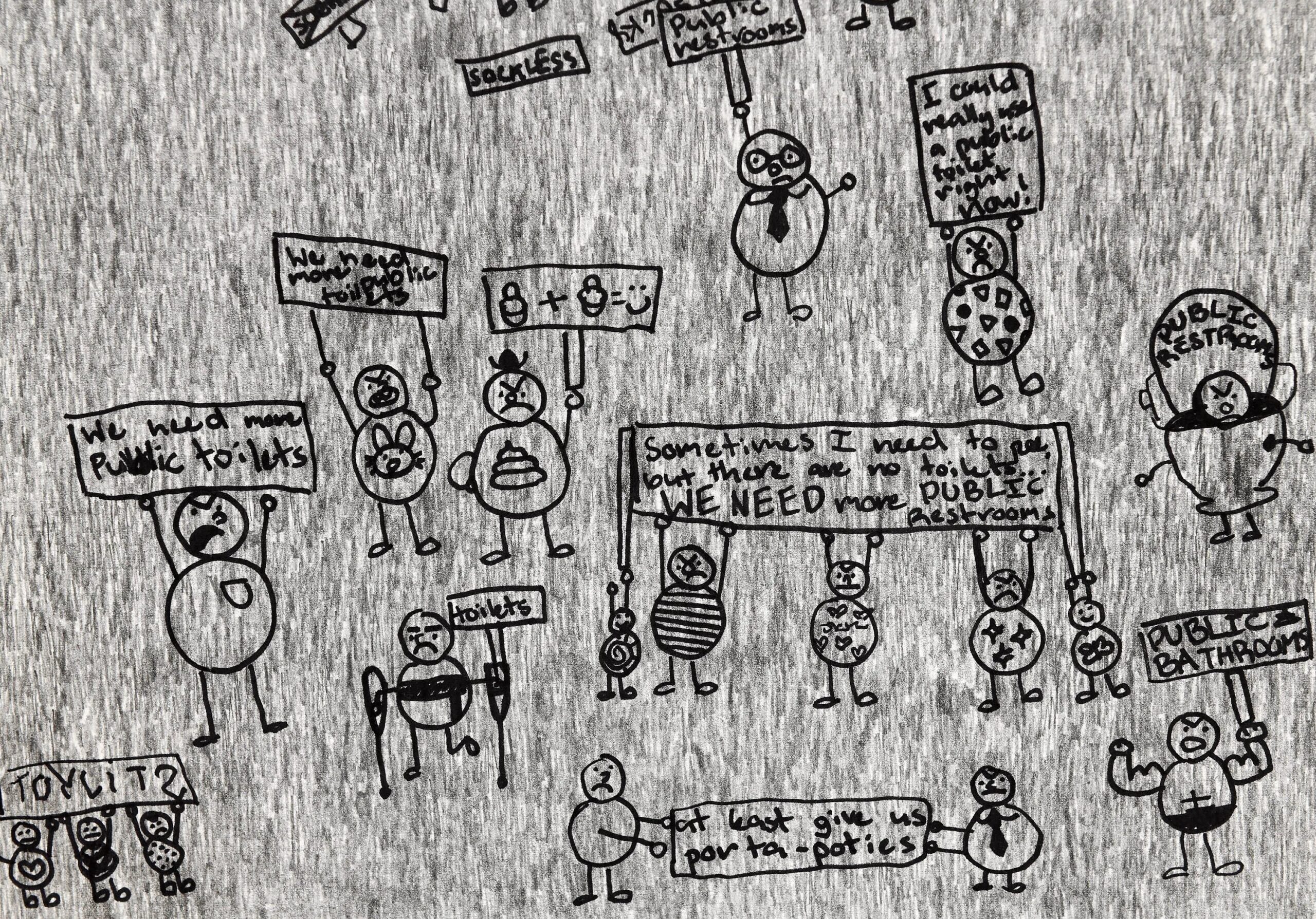 I asked him what the show was about and he said “the show is about generations, the future becoming the past, creation and destruction, fear and play.” Most of these themes seem to make sense in my head. Like I get how it is playful, cause he hangs art strangely, like in corners or from the ceiling, and there are animals wearing watches, and a drawing of protesting people that we had fun making together. But I still needed to ask him why a scribble symbolizes “creation and destruction”, so maybe I wouldn’t say that the themes he chose make complete sense. I would also like to mention that one of the scribbles in this show has been deemed the “perfect scribble” by him, but it really just looks like any other scribble. Personally, I think he was delusional at the time of drawing it, as he had drawn hundreds of scribbles beforehand, just so he could have the “perfect” one.