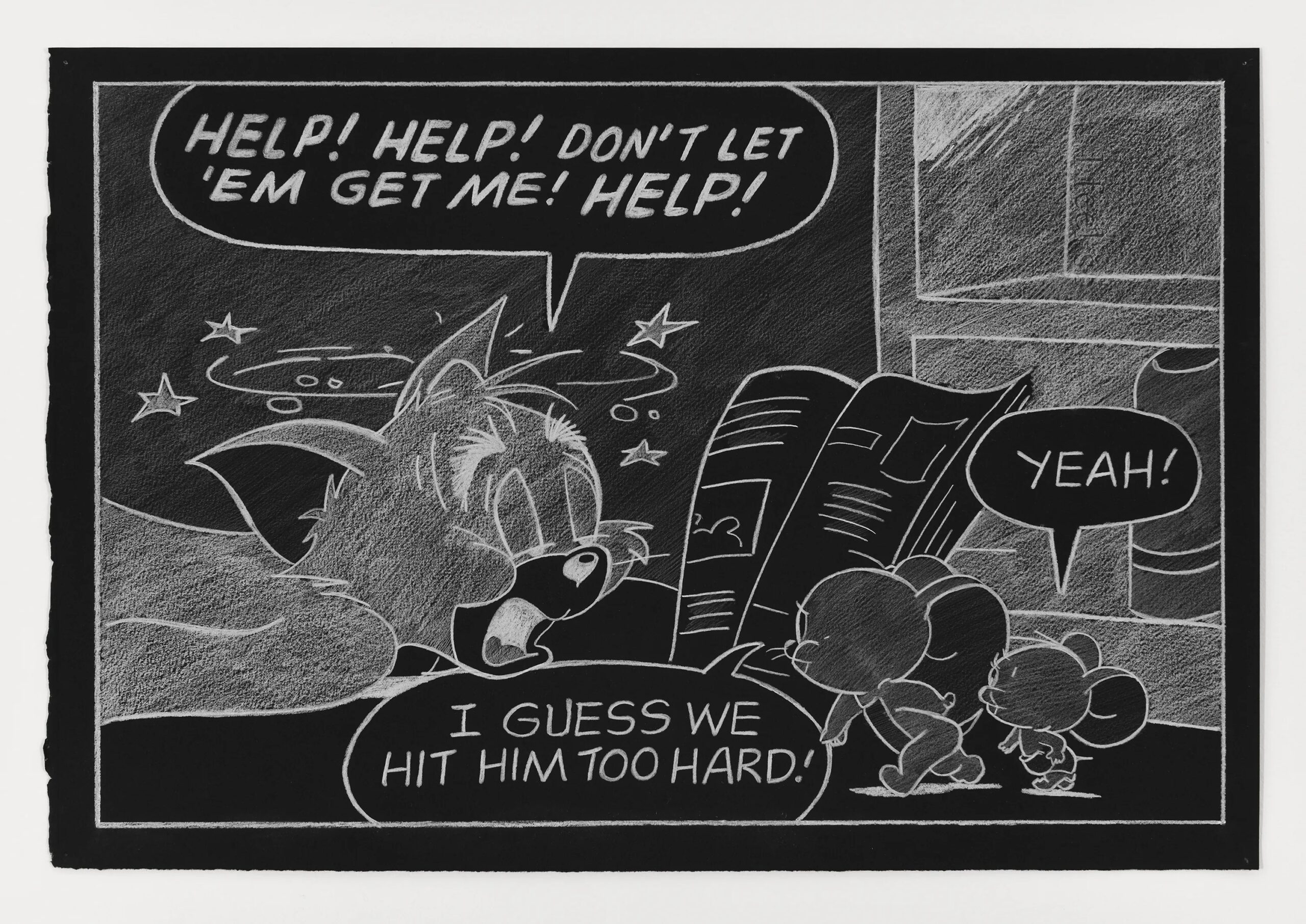 Wax pencil on enamel on paper