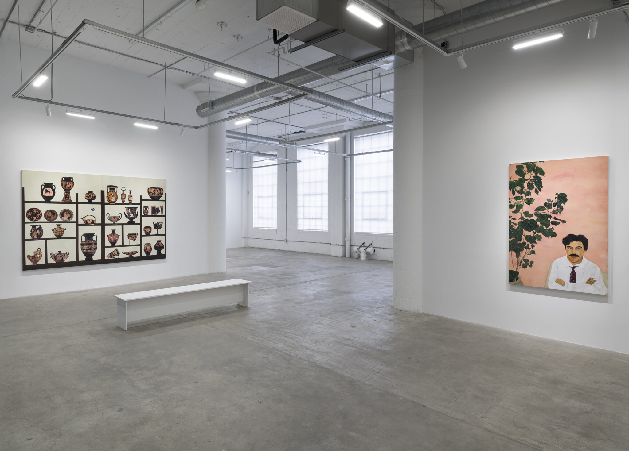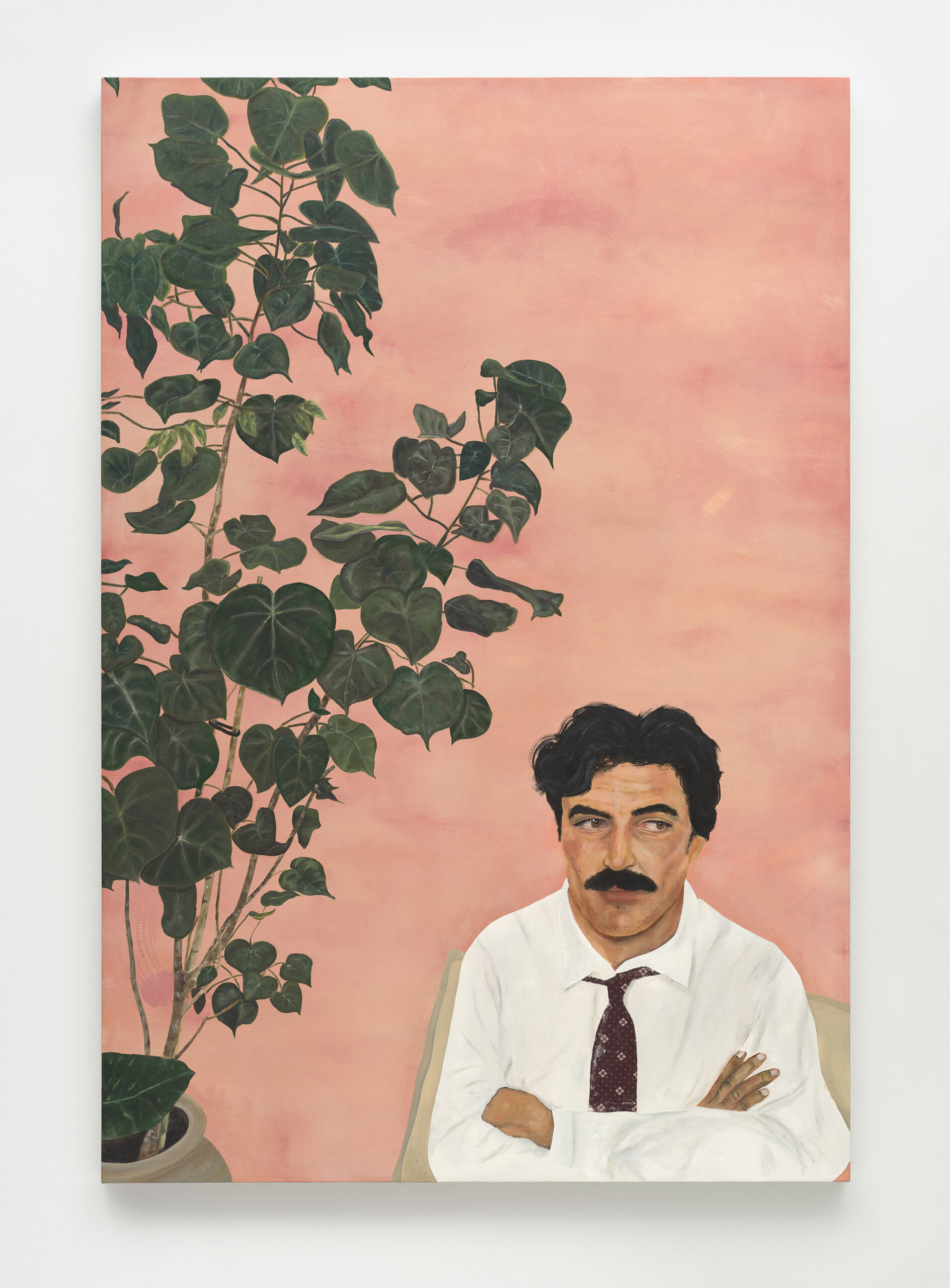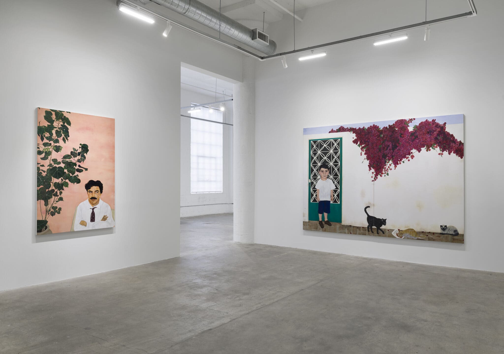 The paintings included in this exhibition are deeply influenced by Tompolidis’ recent move to Mexico City from Berlin, incorporating the color palette, visual sensibilities, and the endemic flora and fauna of his new environment into meticulous portrayals of memories and emotional states. Much of his practice grapples with his perception of being in between cultures and places, articulating both the parallels and fissures between his adopted home and his native country of Greece. The paintings depict subjects who seem to vacillate between feelings of displacement and familiarity, fragility and resolve, with a granular attention given to the patinas and patterns of their surroundings.