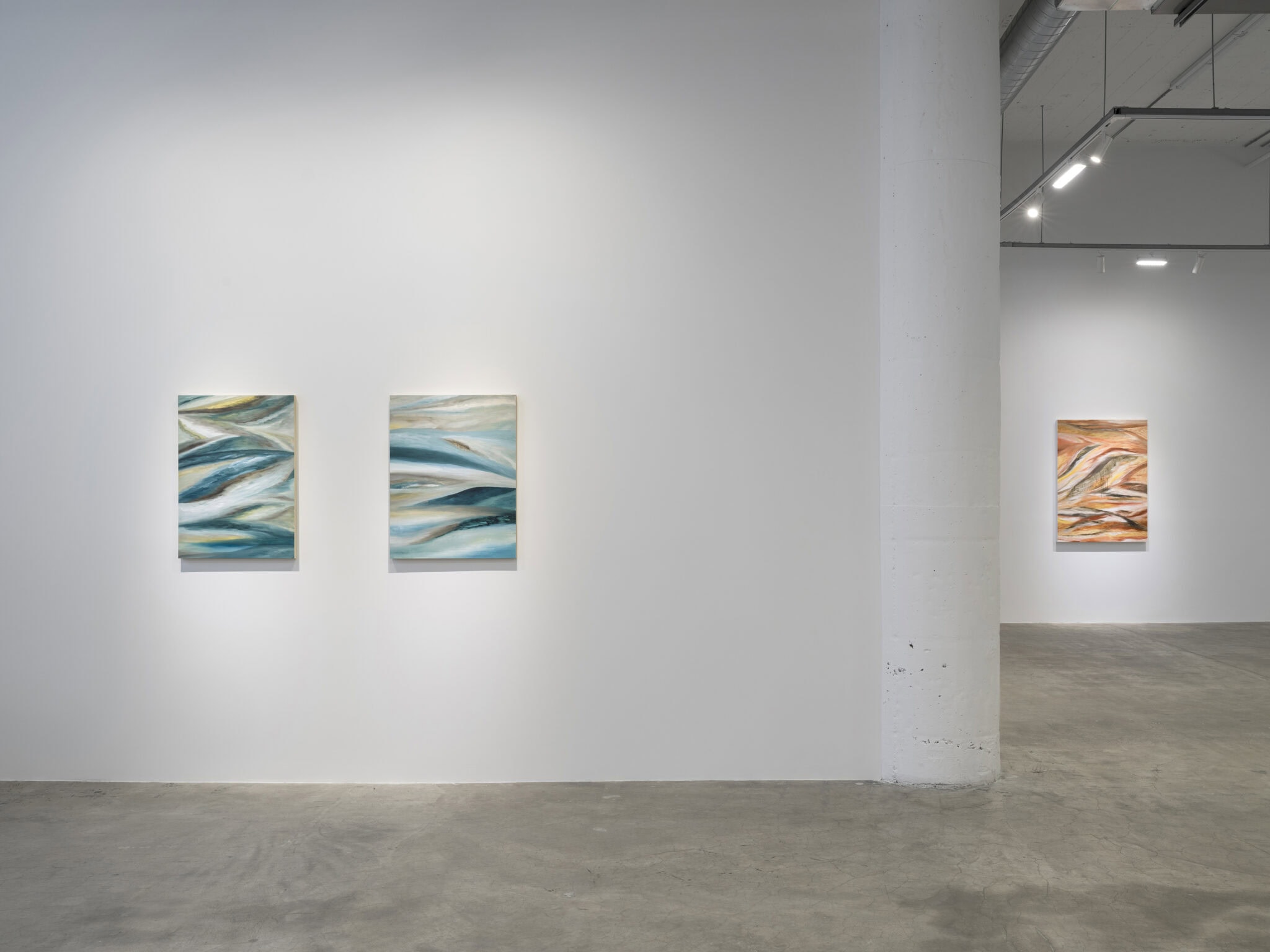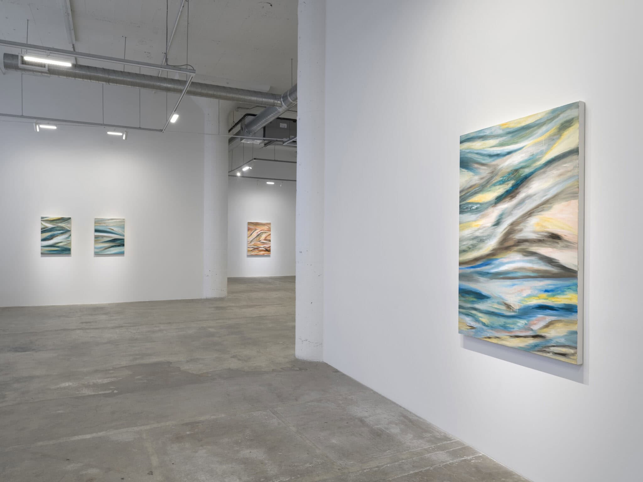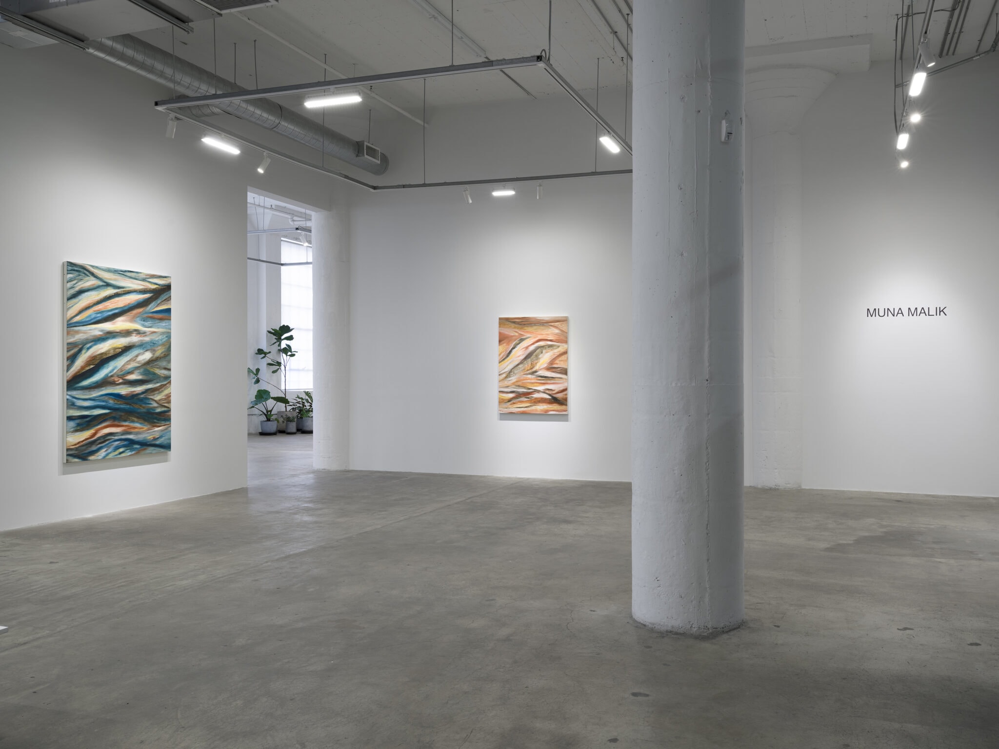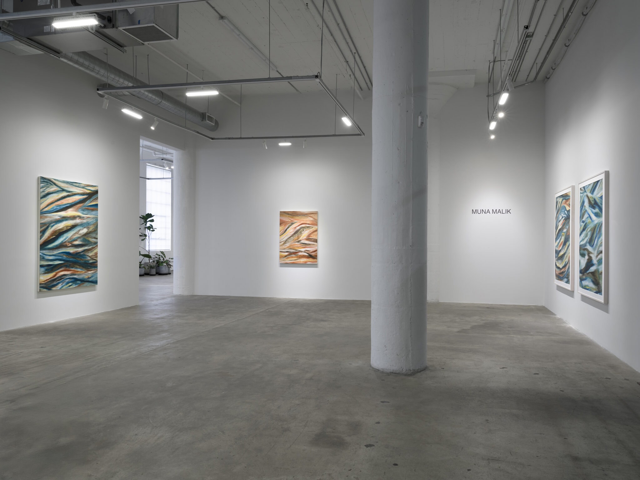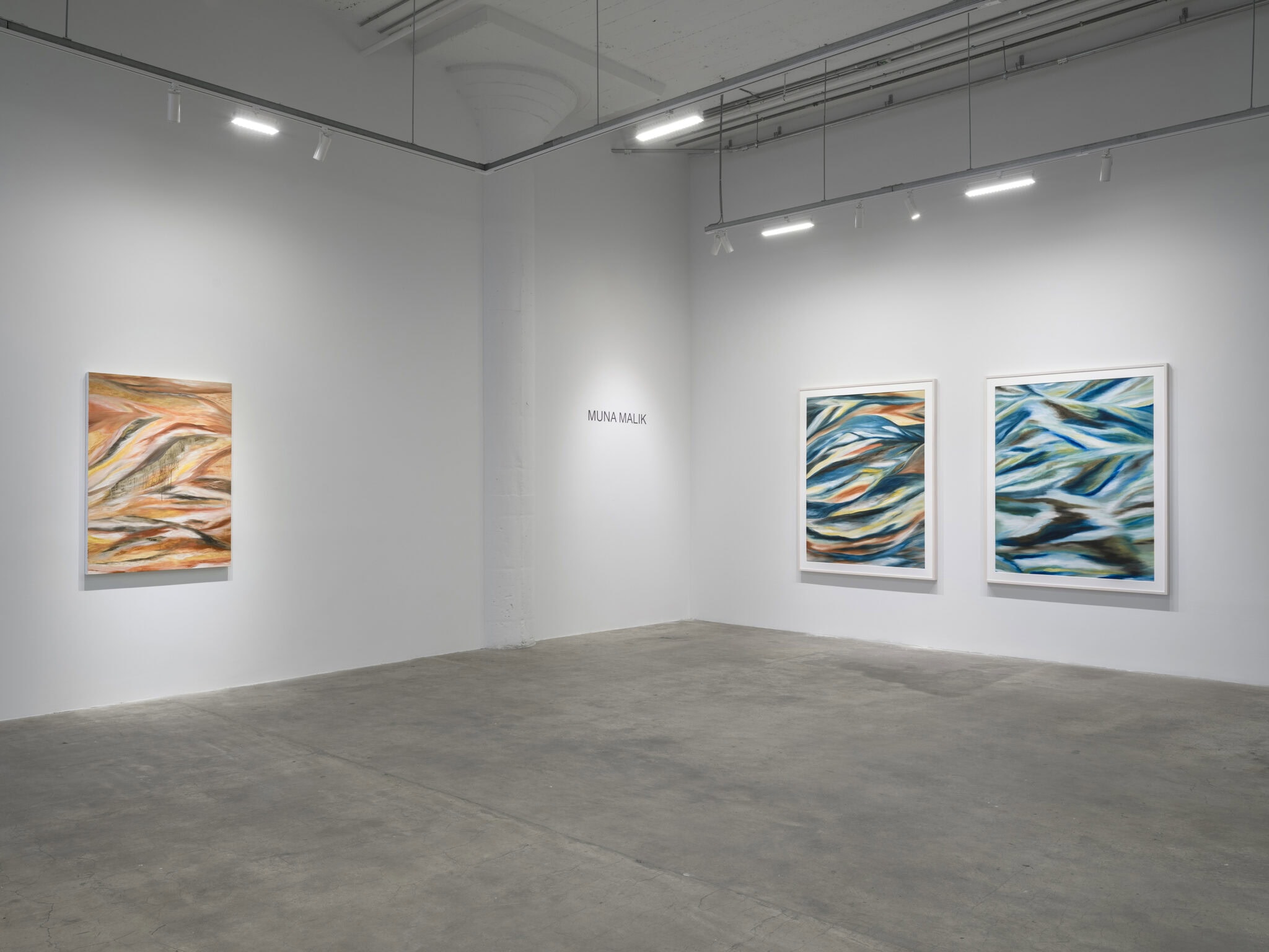 Malik’s works are influenced by the philosophical texts of Rick Dolphijn, as well as her travels to remote countries and continents. The paintings explore concepts of personhood and identity in relation both to the human body and to the physical terrain that it inhabits. Her most recent paintings examine elemental forms in motion – water, earth, and sky seamlessly meld together with other less tangible kinds of matter, in undulating compositions that ripple with kinetic energy.