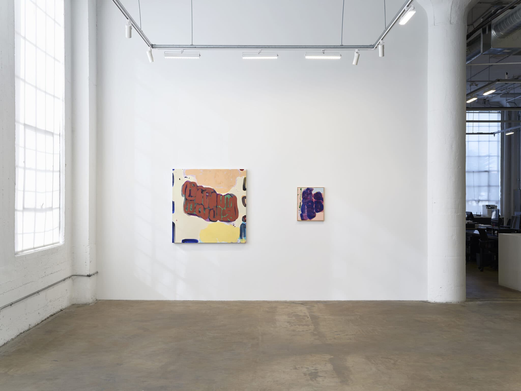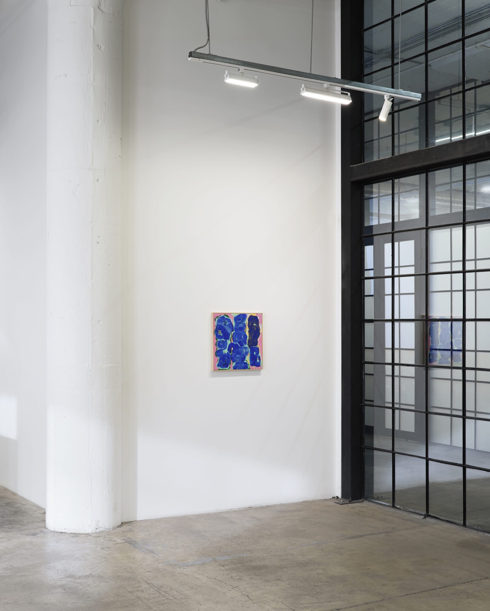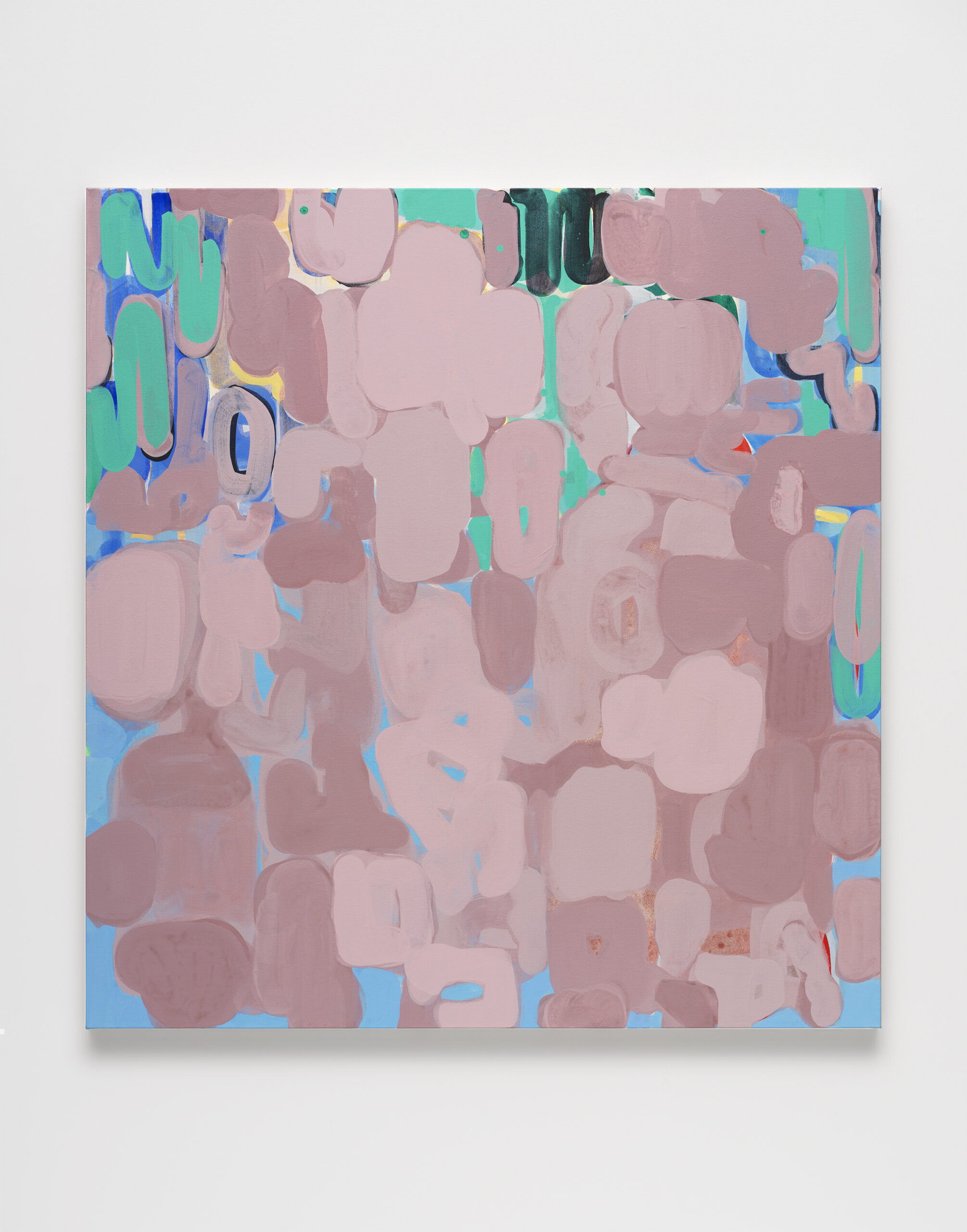 Min continues an exploration of the material possibilities of mark-making, employing a variety of different applications: wet and dry brush strokes, pours, drips, and rolls. The amalgamation of these approaches creates complex relationships between figure and ground, where solids dissolve into formlessness and shapes materialize out of pure expanses.