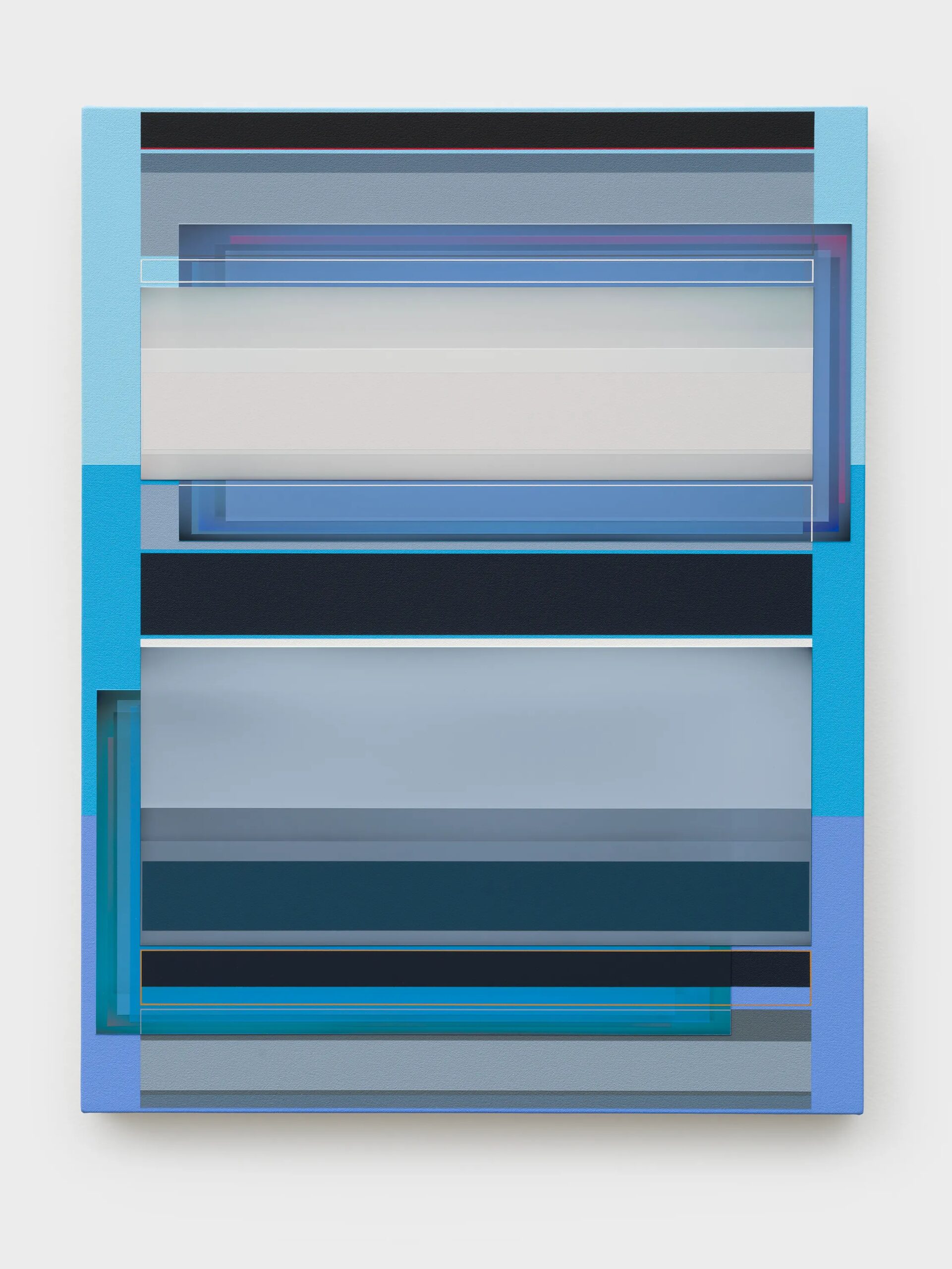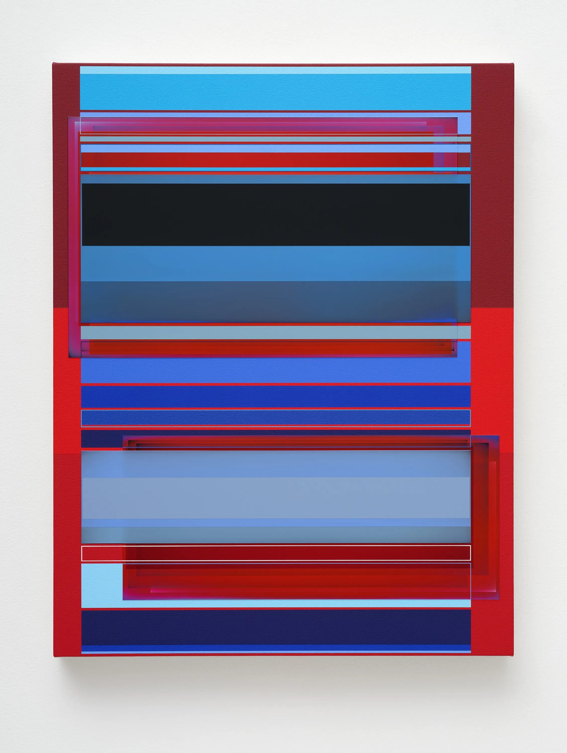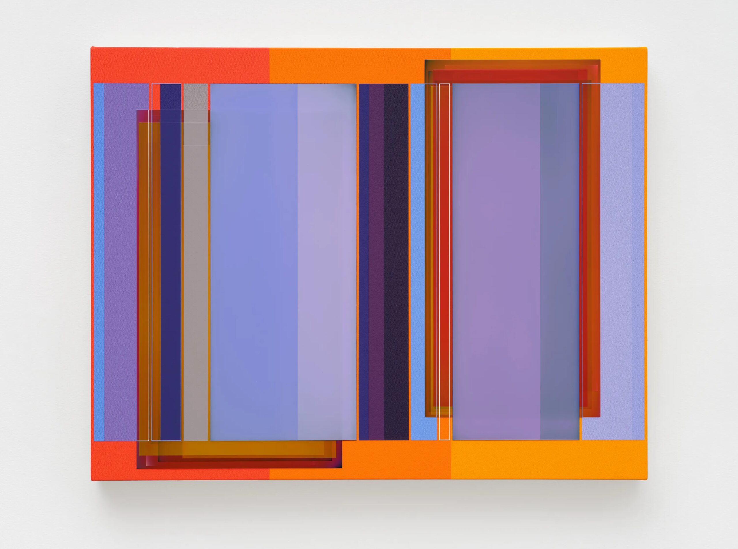 Patrick Wilson creates hard-edge paintings that reflect seductive improvisations on radiant color and meticulous structure. In lineage with John McLaughlin, Fred Hammersley, and Karl Benjamin, he incorporates a fascination with the history of California hard-edge painting, light and space, and fetish finish into intensely colorful paintings of varying planes and opacities through fastidiously applied layers of acrylic paint. Over the past twenty years, Wilson’s works have continued to evolve with complexity and finesse through a consistently immaculate process of creating super-flat surfaces that seem at once both solid and transparent.