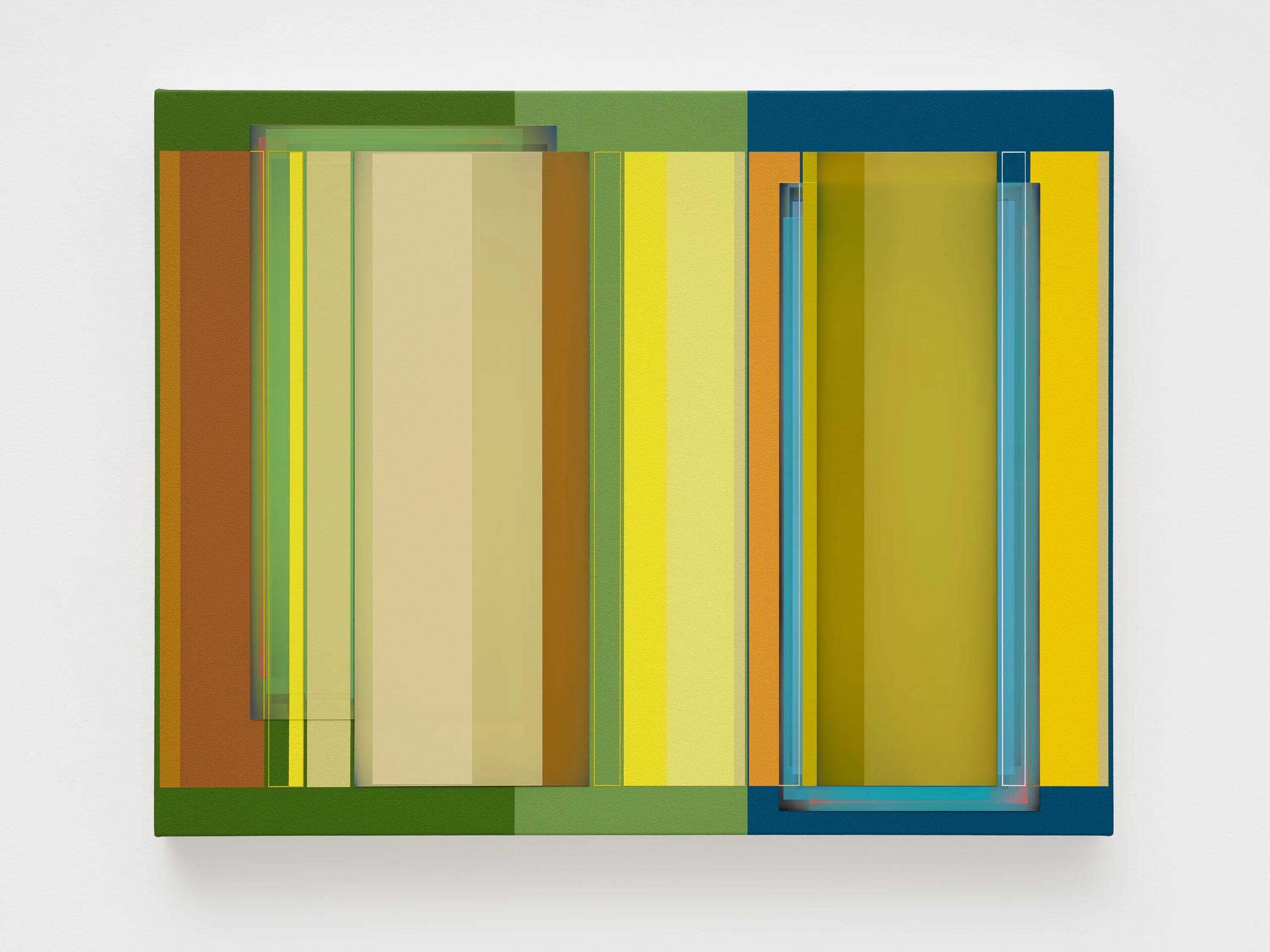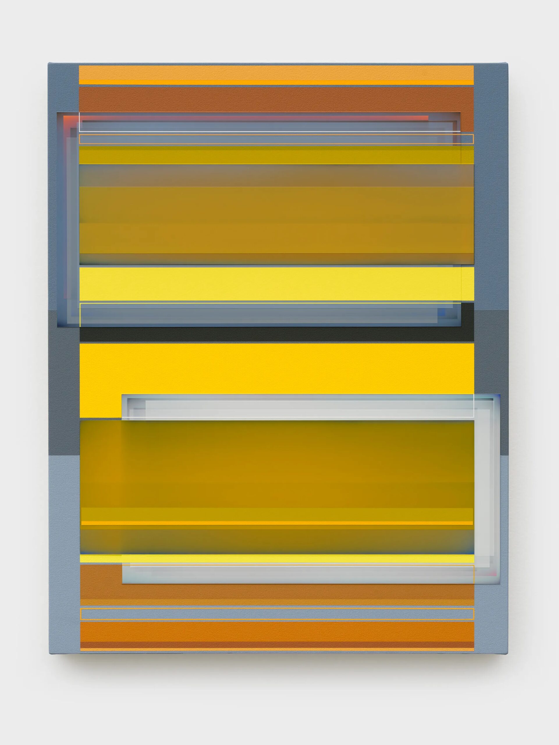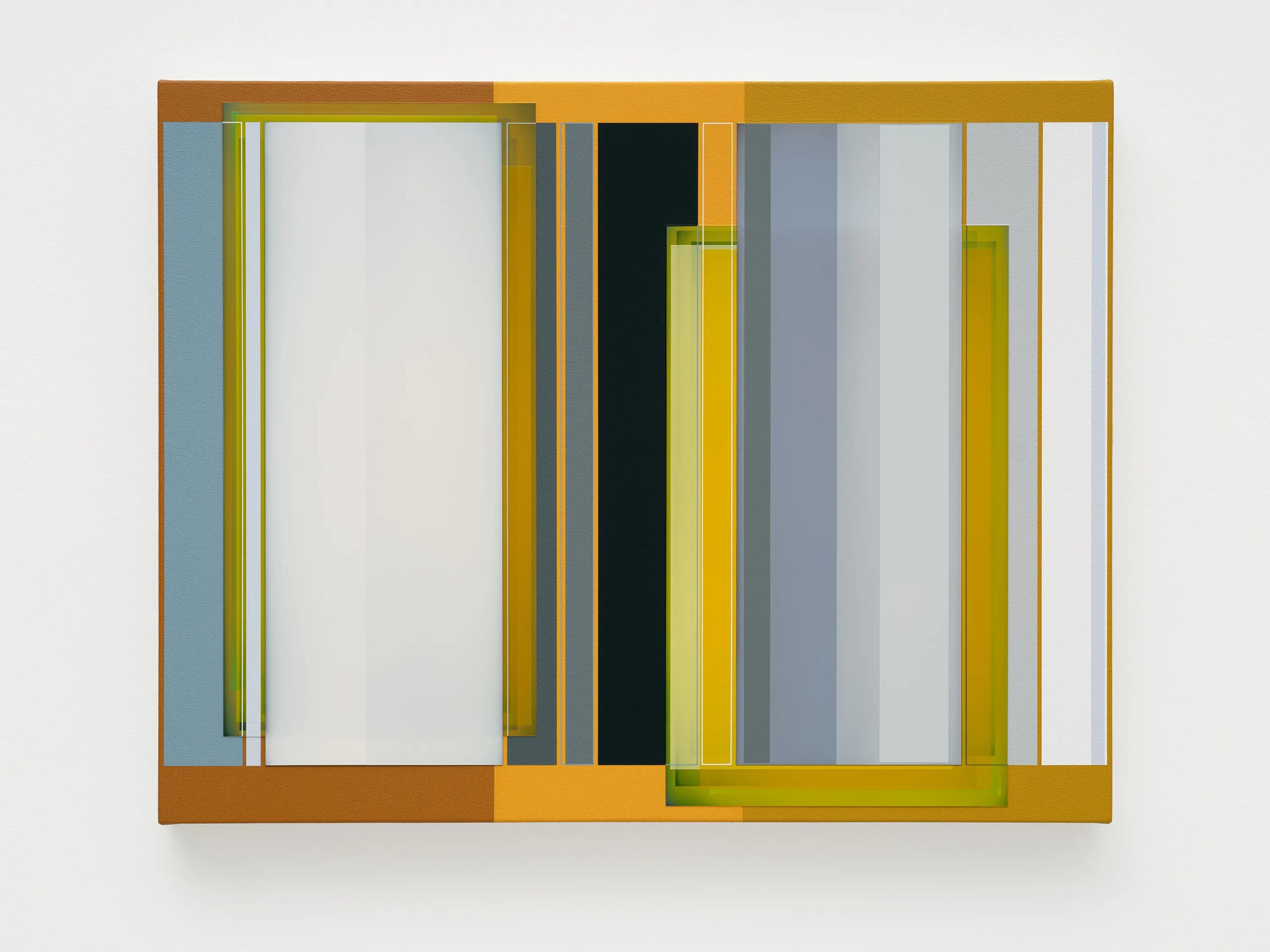 Patrick Wilson creates hard-edge paintings that reflect seductive improvisations on radiant color and meticulous structure. In lineage with John McLaughlin, Fred Hammersley, and Karl Benjamin, he incorporates a fascination with the history of California hard-edge painting, light and space, and fetish finish into intensely colorful paintings of varying planes and opacities through fastidiously applied layers of acrylic paint. Over the past twenty years, Wilson’s works have continued to evolve with complexity and finesse through a consistently immaculate process of creating super-flat surfaces that seem at once both solid and transparent.