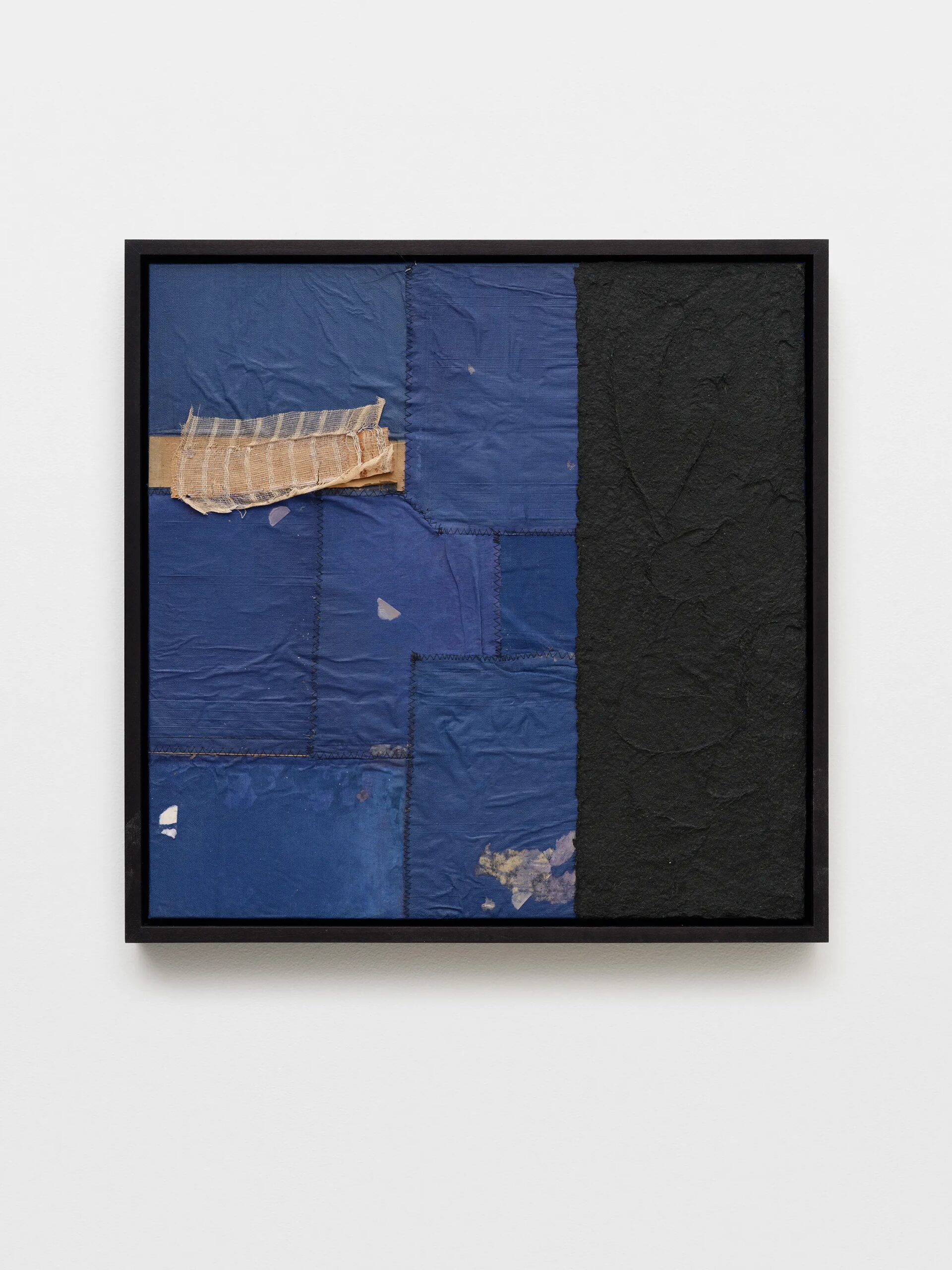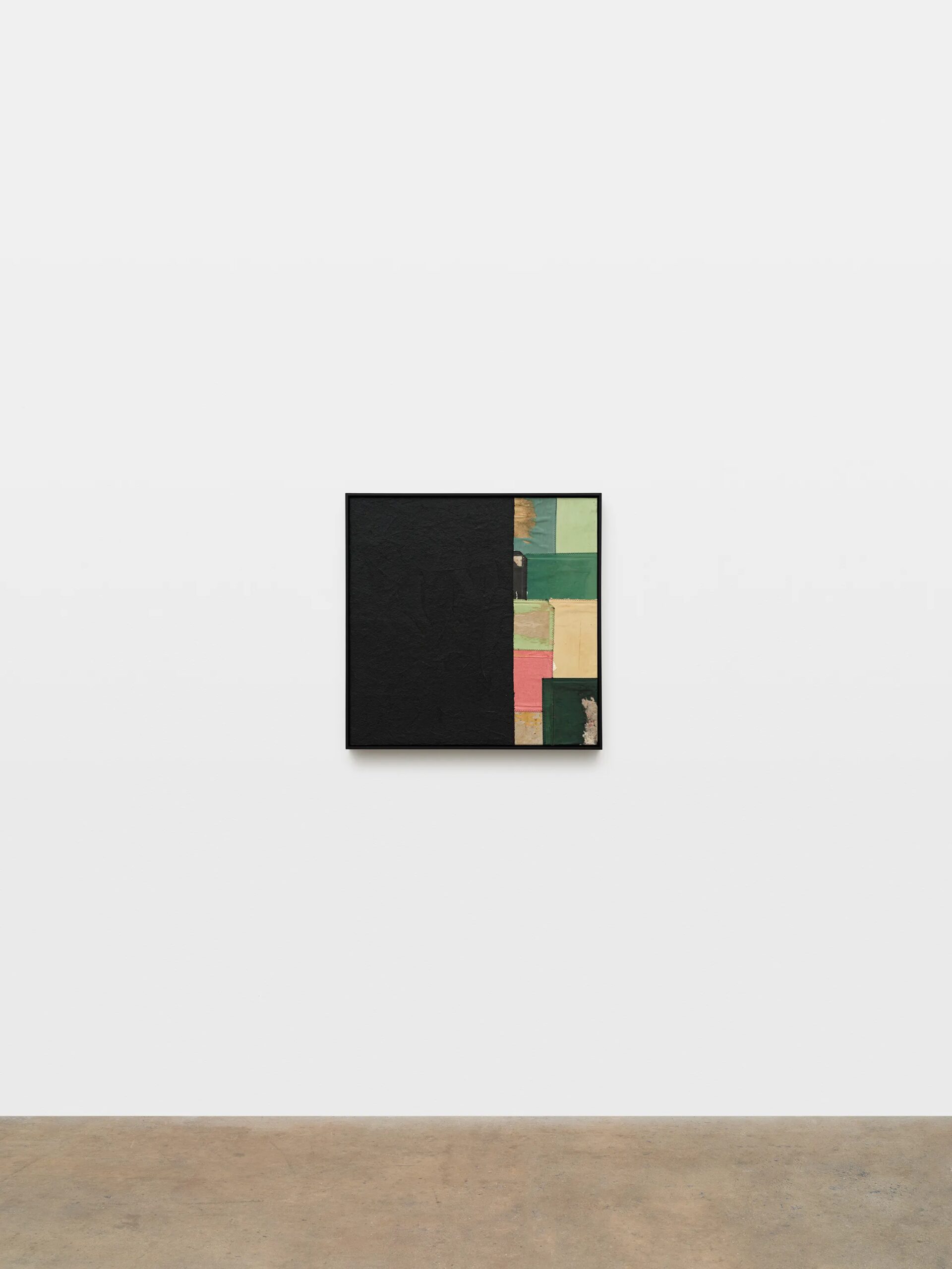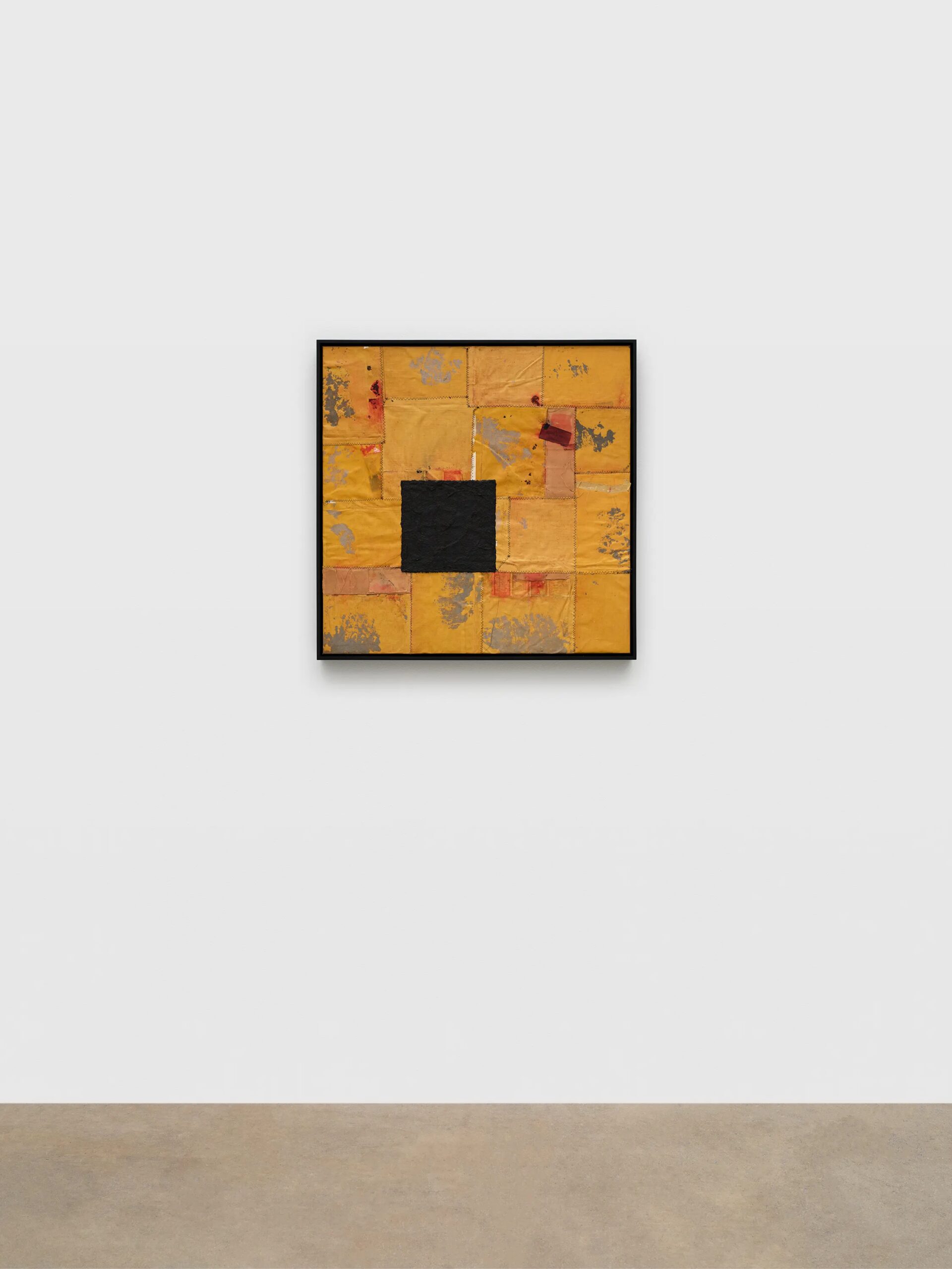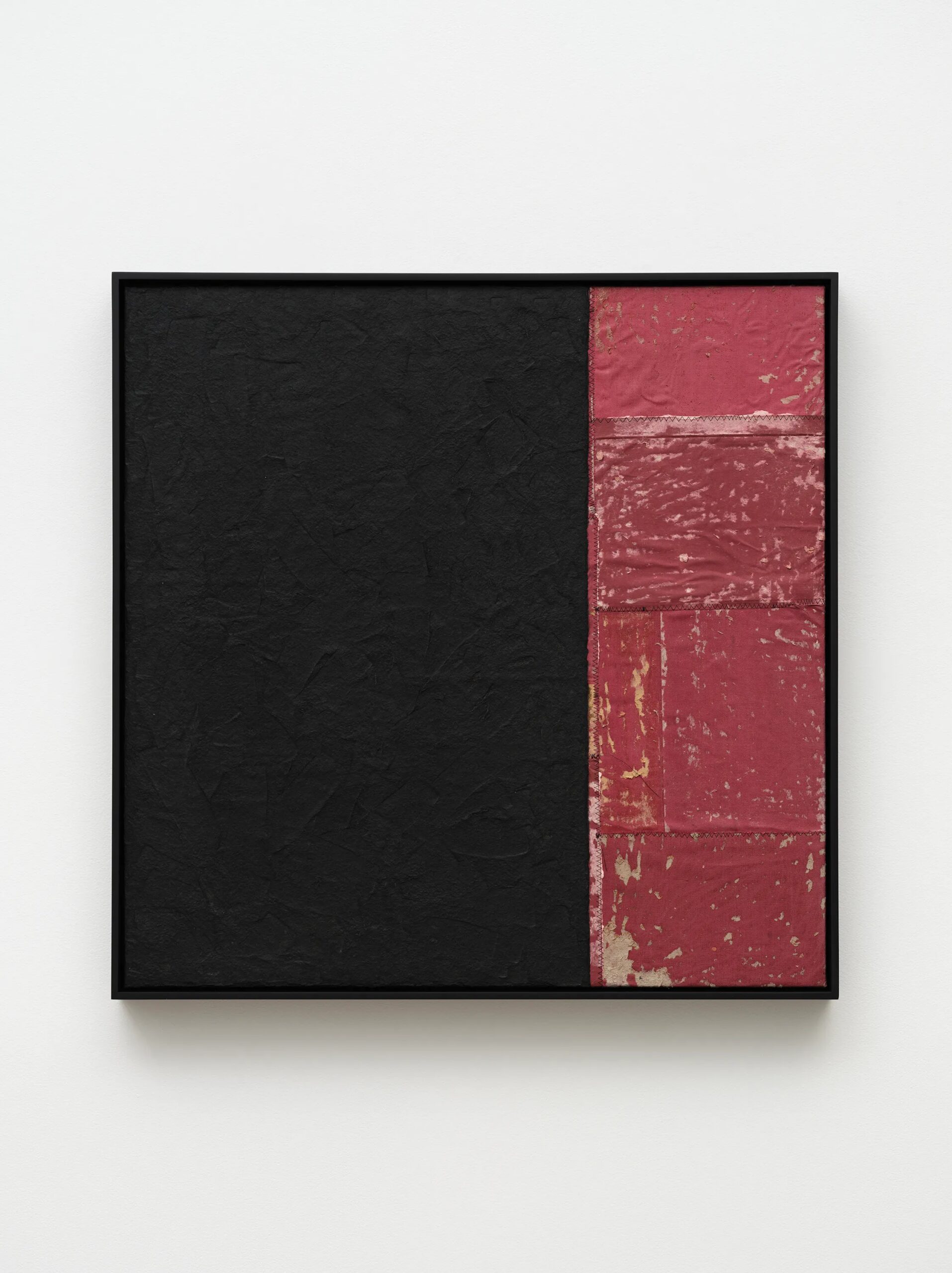 Samuel Levi Jones deconstructs and reconstitutes found legal, medical, and historical texts into layered compositions that grapple with questions of authority, representation, and recorded history. The resulting works consist of disassembled book covers sewn together and interspersed with pulped paper, producing surfaces that digest and transform their source material into grid-like fields of color and texture. Jones’s practice centers on physically undoing volumes of information, probing the existing power structures and struggles of exclusion and equality, and finally, reimagining their material components into painterly abstractions.